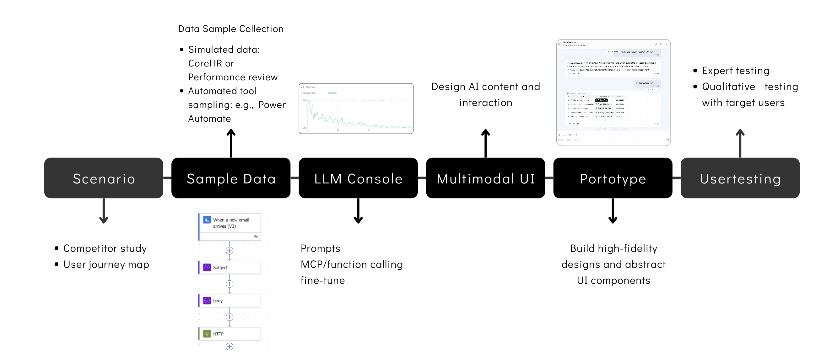Building upon traditional design processes/models (such as the double diamond model), the new one added AI scenario simulation and AI content innovation, and combined it with my new AI console, resulting in more precise AI prerequisites and more powerful design multimodal output templates.
